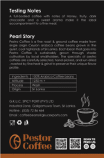Pestor Coffee is a fine roast coffee made from Single-Origin Ceylon Arabica beans grown in the central highlands of Sri Lanka. Each bean that goes into Pestor Coffee is sustainably grown through shade cultivation by local smallholders. The specialty of Pestor coffee is carefully selected, hand-picked, sun-dried, and roasted by fine heat to preserve their unique flavor profile.